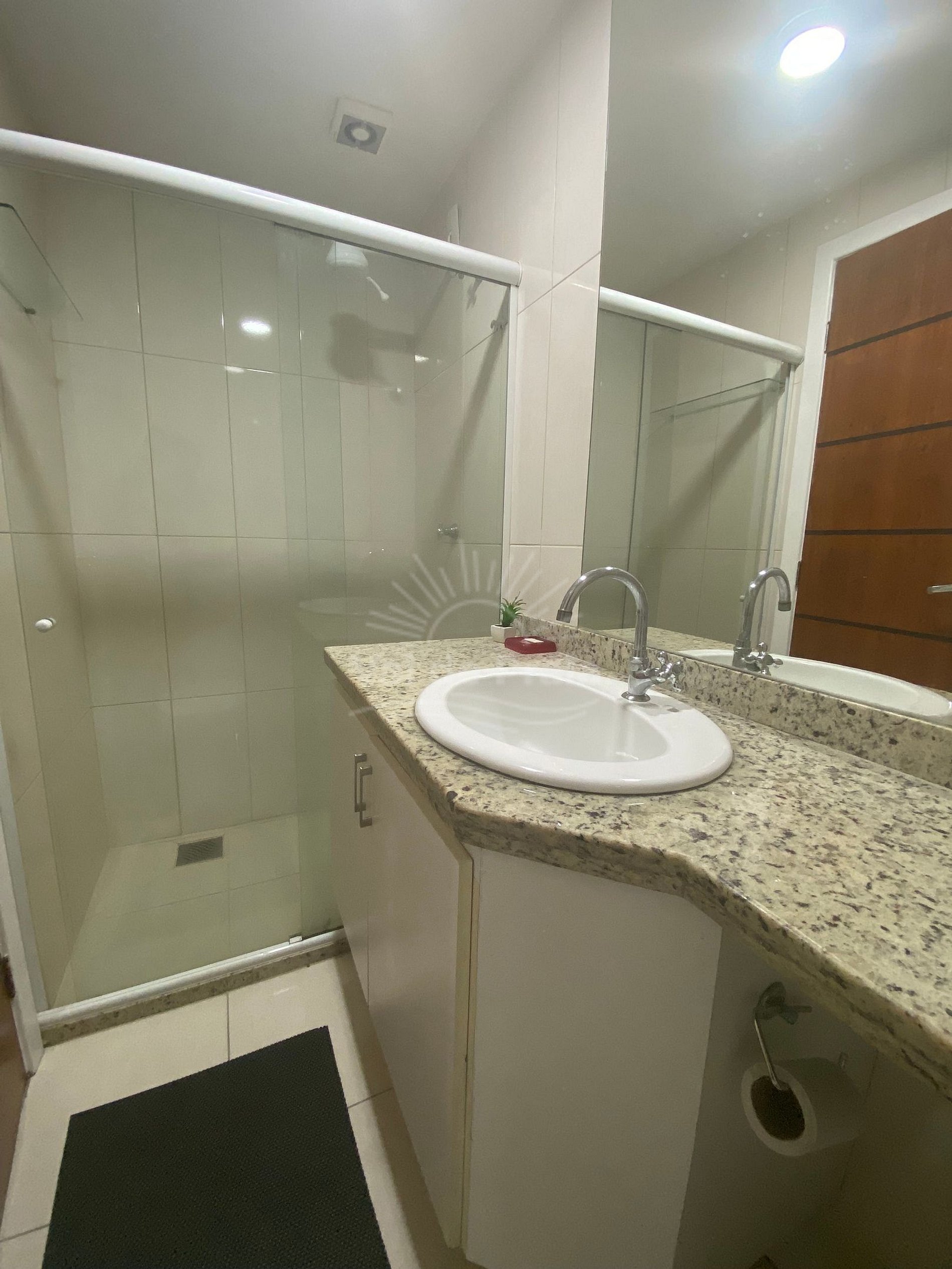 Composto por 2 quartos com ar condicionado e ventilador de teto, 2 banheiros, sala, cozinha, varanda, vaga de garagem para 1 carro de passeio.