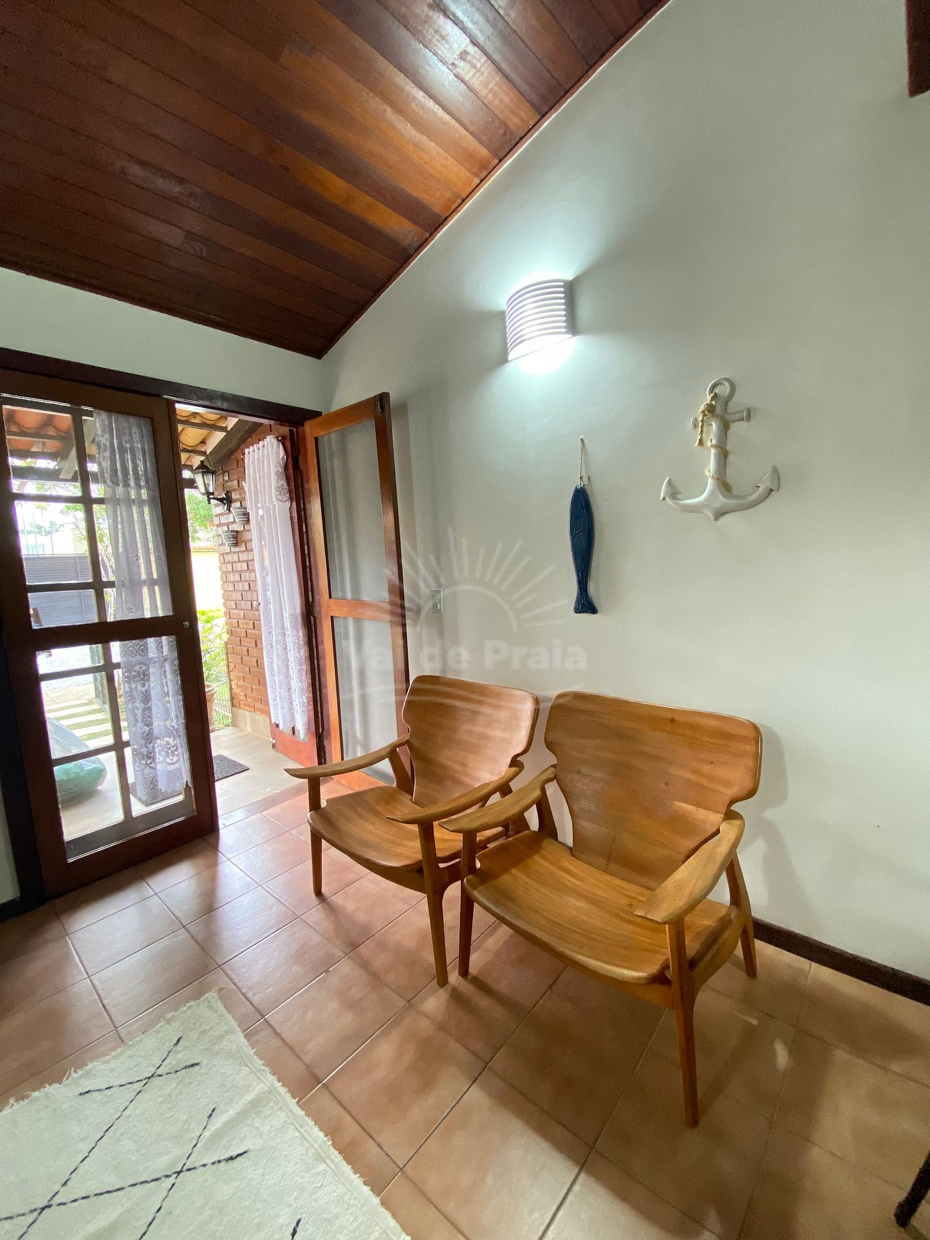 O espaço social integra sala e cozinha, criando um ambiente perfeito para reunir família e amigos. A área externa é um charme à parte: madeira, plantas e detalhes naturais compõem um cenário ideal para relaxar depois da praia e fazer aquele churrasco.