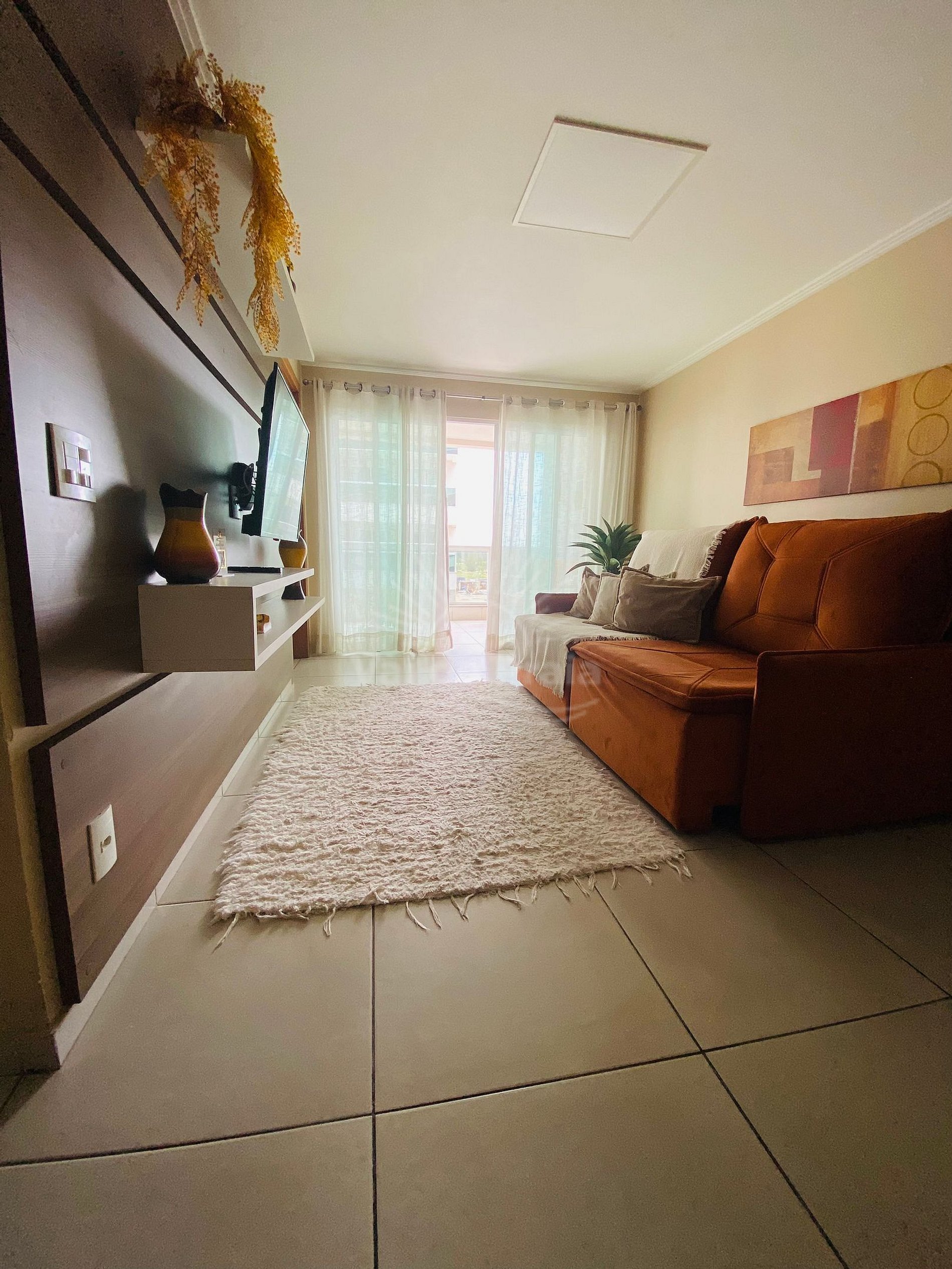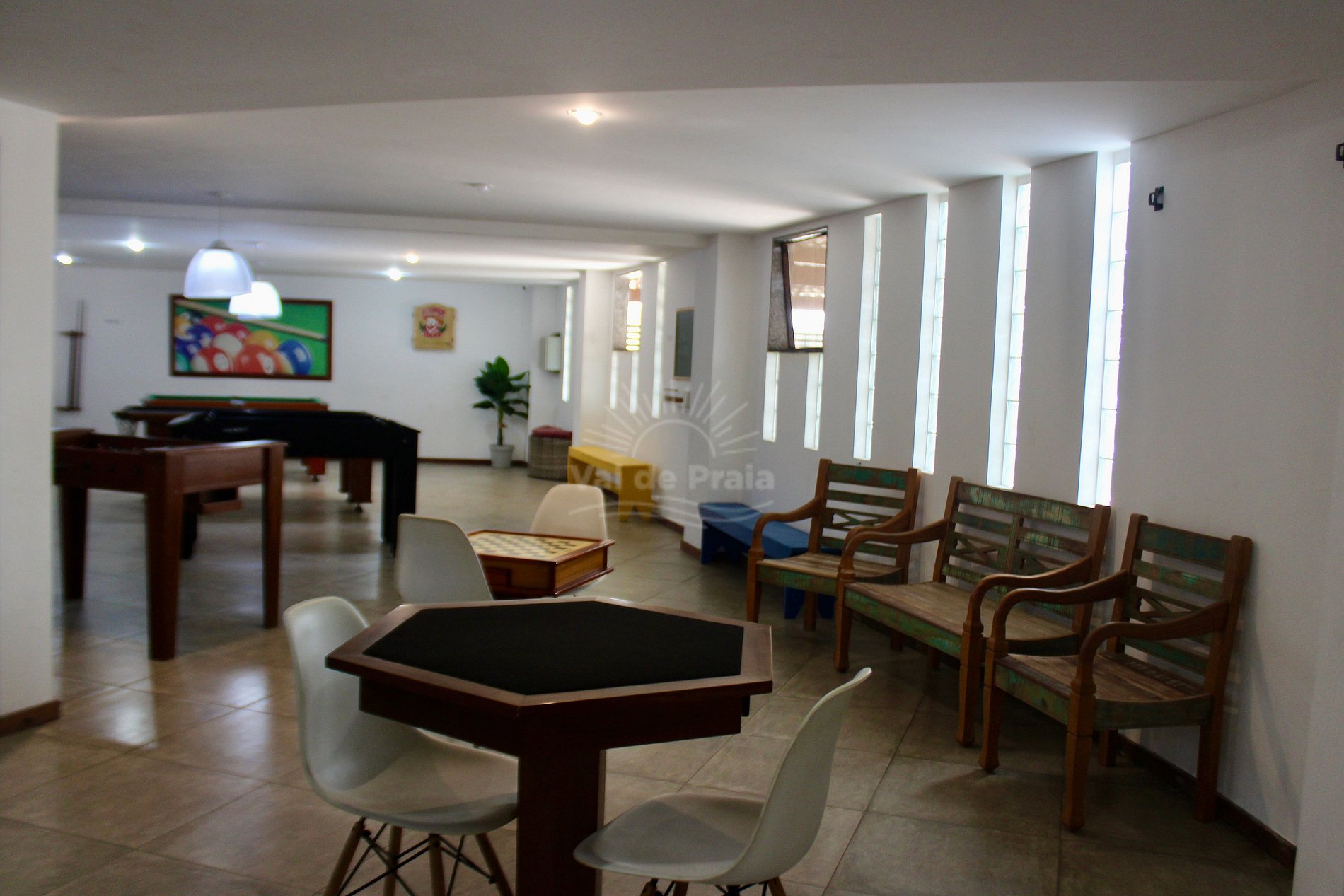 O apartamento conta com: 1 suíte com 2 camas de casal, 1 quarto com 1 cama de casal e 1 cama auxiliar de casal. Sala equipada com sofá retrátil e mesa para 8 pessoas. Varanda gourmet com mesa, cadeiras e churrasqueira a gás. Também oferecemos cadeiras de praia e guarda-sol.