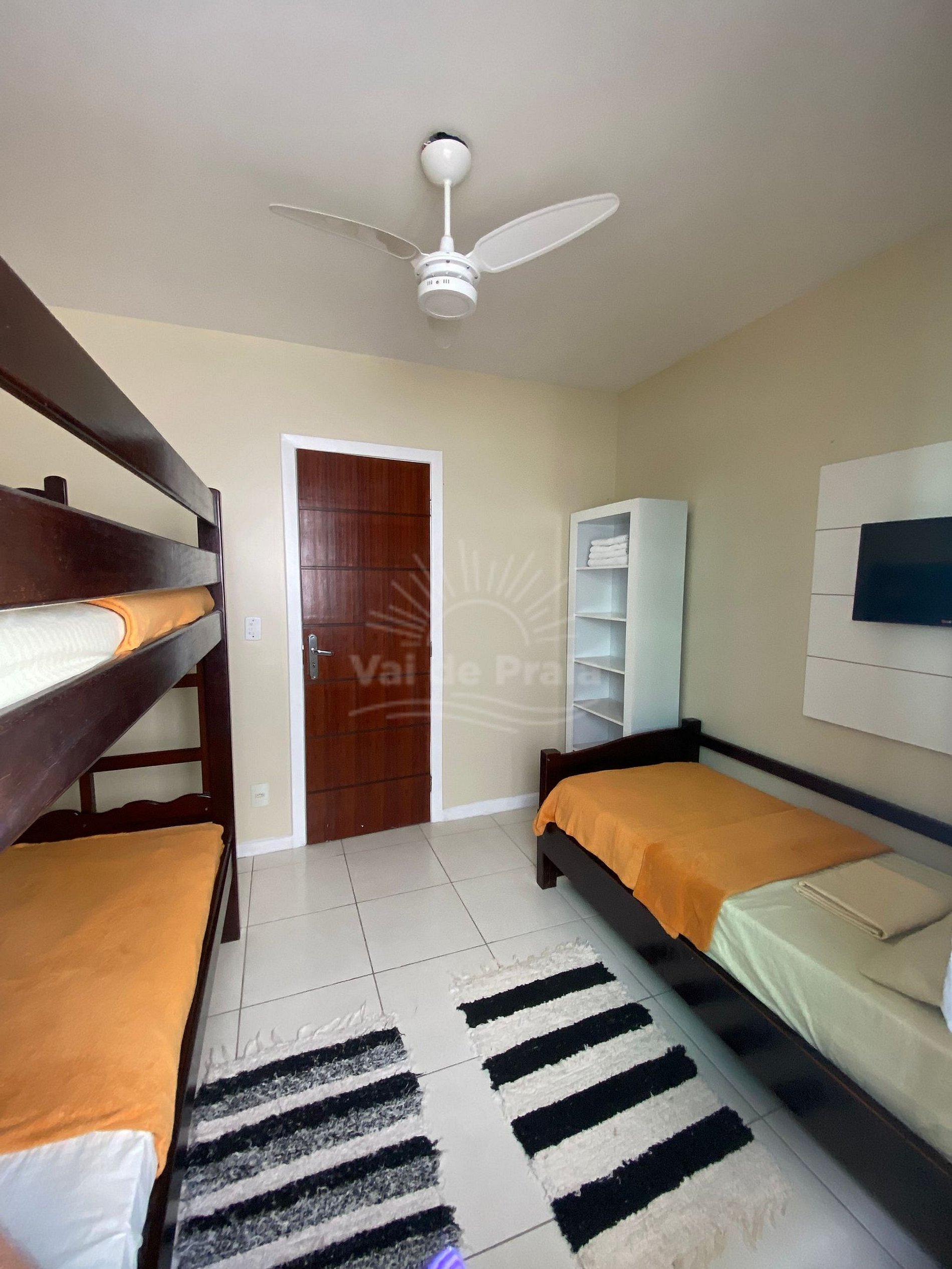 Composto por 2 quartos com ar condicionado e ventilador de teto, 2 banheiros, sala, cozinha, varanda, vaga de garagem para 1 carro de passeio.